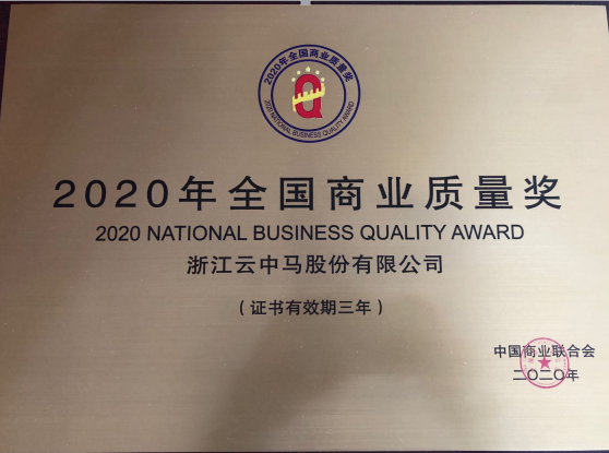 點擊量: 2020-11-09 熱烈慶祝浙江云中馬股份有限公司榮獲“全國商業質量獎”。全國商業質量獎是由國務院批準、中國商業聯合會設立并根據《全國商業質量獎評審管理辦法》評選頒發。是我國商貿流通、商業經營、服務質量、科技創新的最高榮譽。本次評選出獲獎單位共126家。